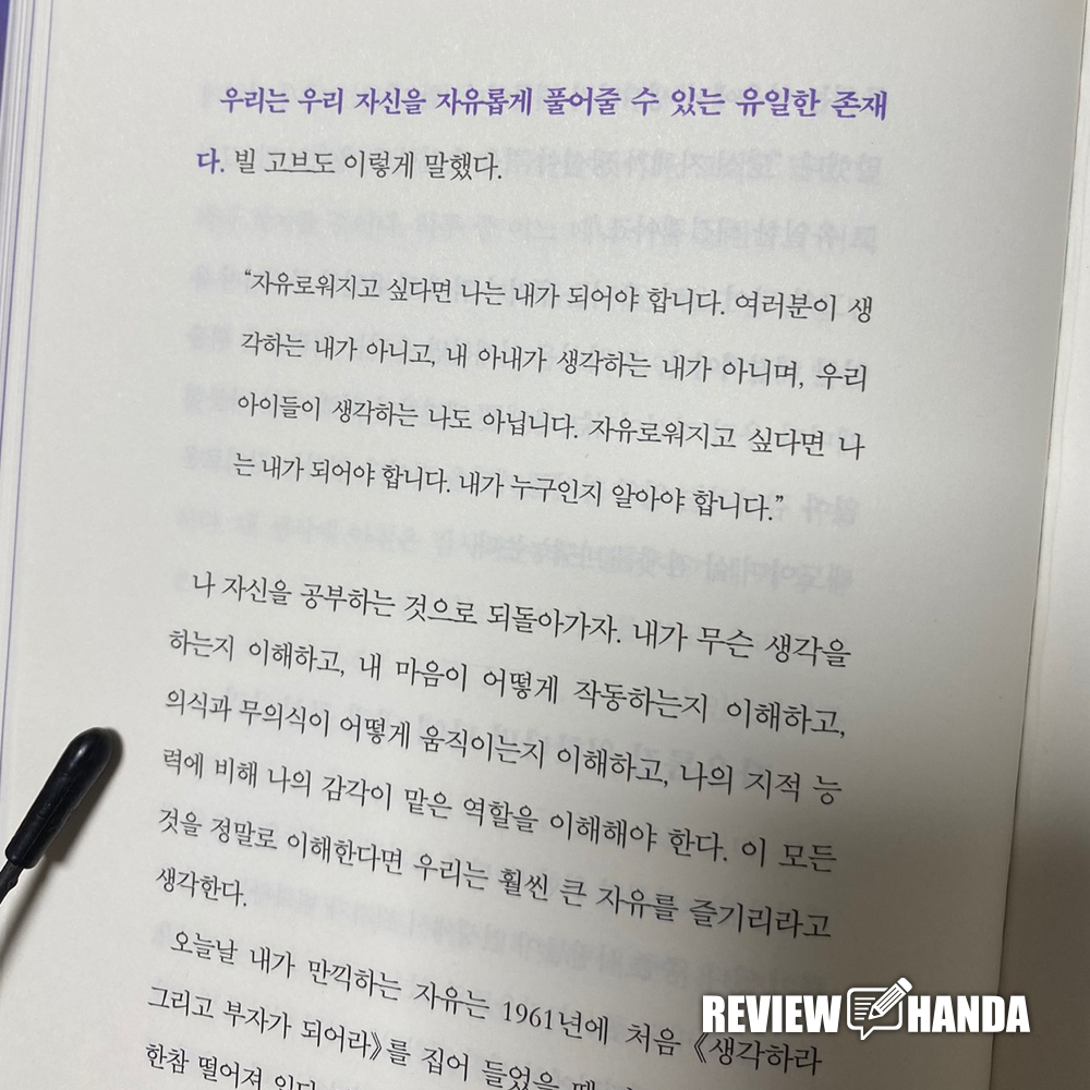 우리는 남에 대해서는 많이 알려고 한다. 저사람은 무슨 생각을 할까? 나를 어떻게 생각할까? 마치 다른사람을 공부하듯 행동한다. 그런데 정작 자기 자신에 대해서는 공부하려고 하지 않는다. 밥프록터는 나자신을 공부하라고 한다. 나는 이책을 읽기전에 다른 자기계발서에서 이렇게 나공부를 해보라고 해서 나에 대해서 알려고 노력했다. 나의 신념은 무엇인지, 가치, 정체성, 나의 감정들까지 하나하나 알아보다보았다. 쉽지않은 시간이었지만 이렇게 나에 대한 공부를 하다보니, 점점 생각이 변하는것을 느낄수가 있었다.
