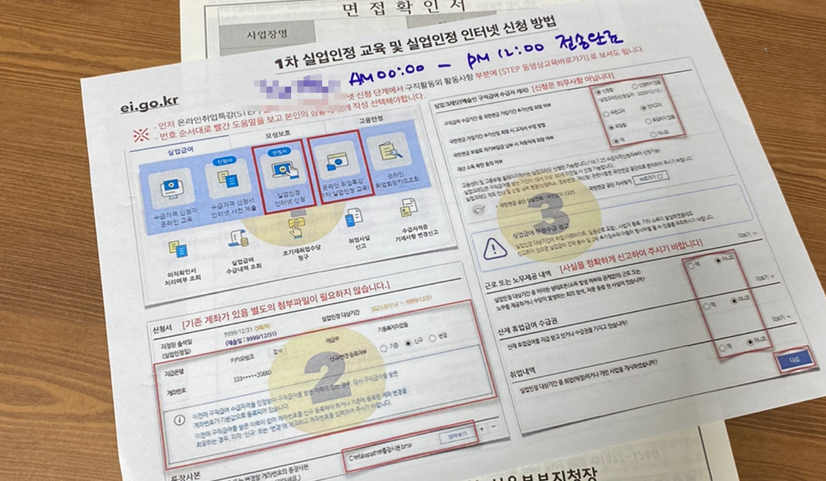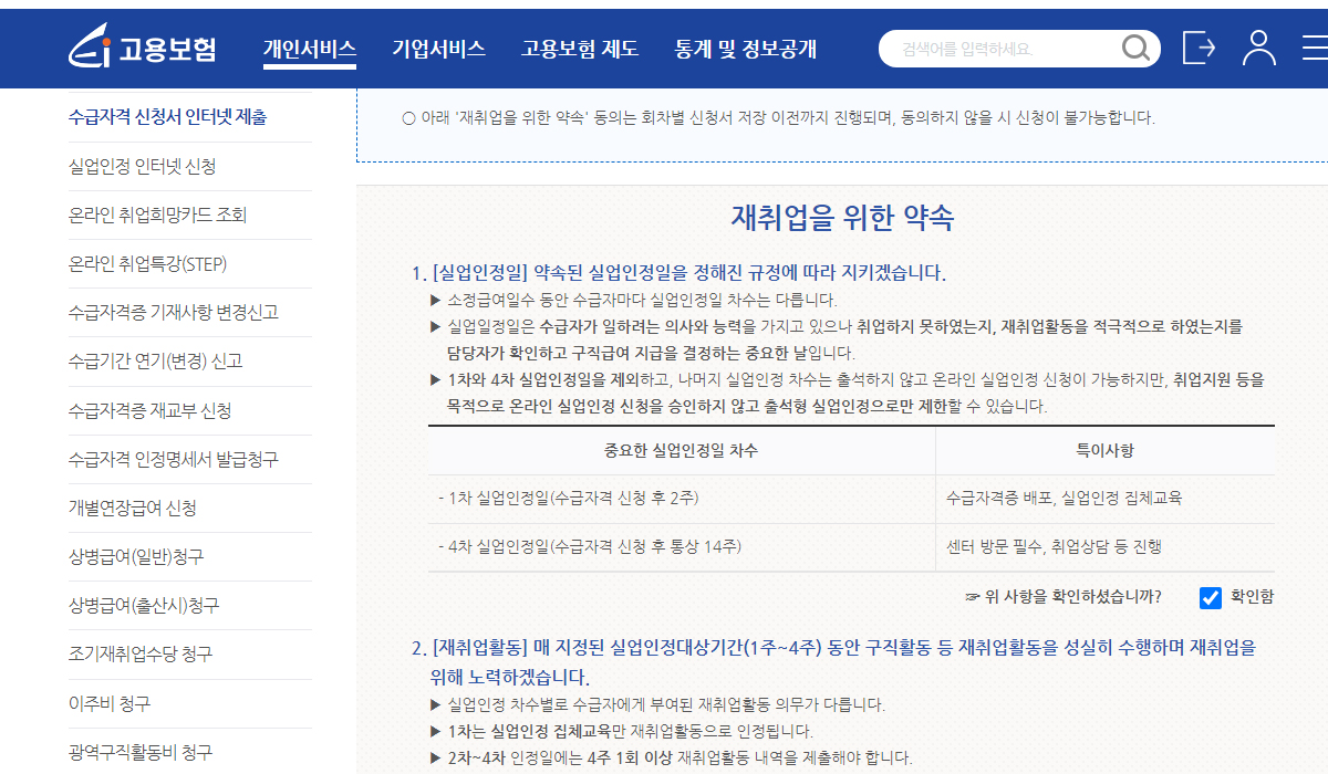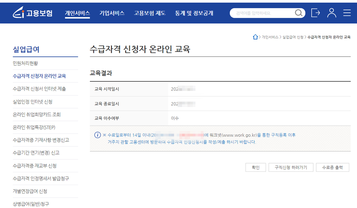 수급자격온라인교육을 마치고 나면 14일 이전에 수급자격 신청서를 제출하고 고용센터를 방문해야 하고,