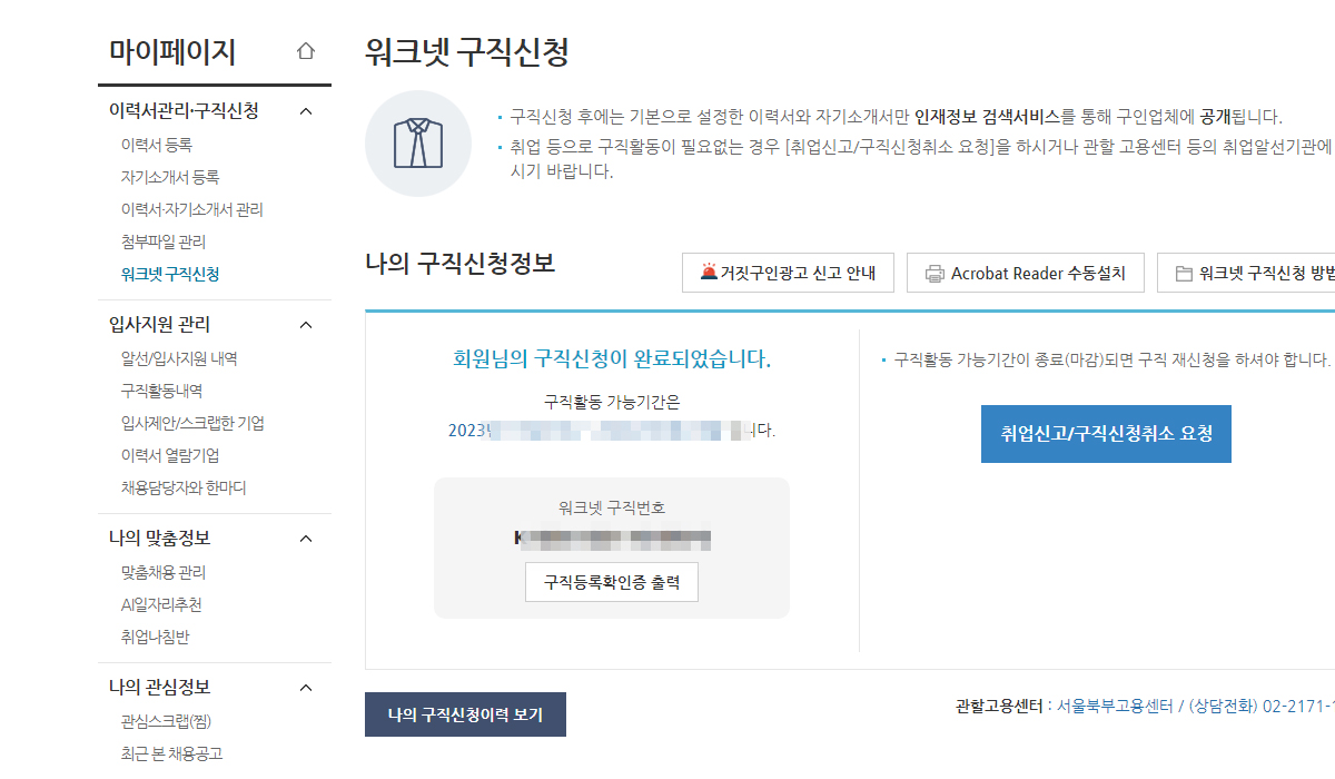 온라인교육을 마치고 해야할일은 워크넷에 구직 신청을 해야한다. 이력서를 올리고, 자기소개서를 작성했다. 구직신청을 하면 구직번호가 나온다. 혹시 몰라서 캡처를 해두었다.