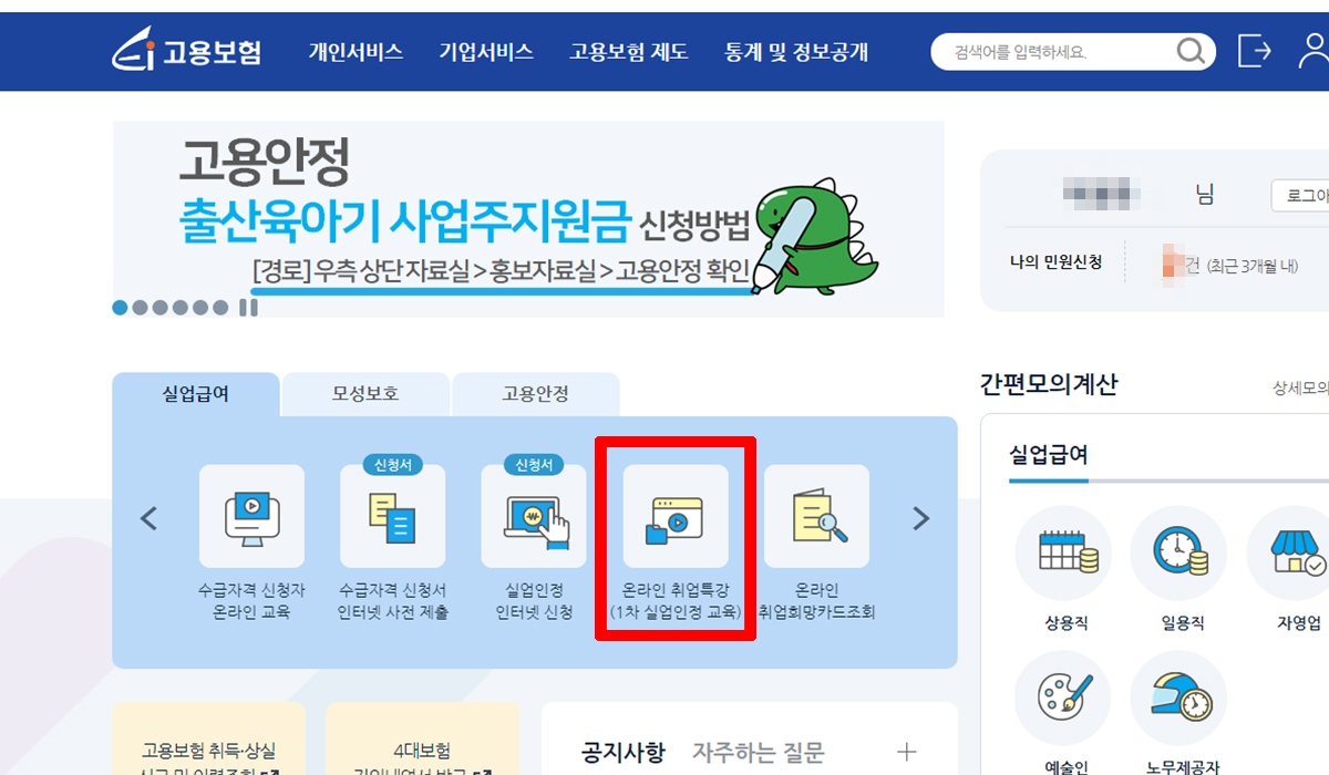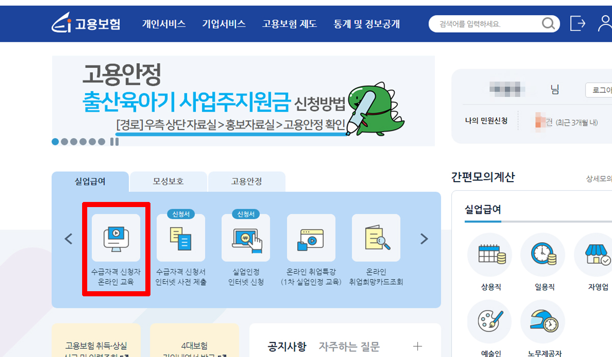 수급자격온라인교육을 마치고 나면 14일 이전에 수급자격 신청서를 제출하고 고용센터를 방문해야 하고,