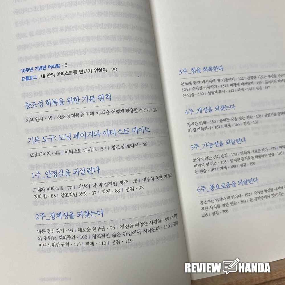 나는 이제 12주간의 워크샵에 들어가려고 한다. 매일아침 모닝페이지를 쓰고, 일주일에 한번 아티스트데이트를 하고, 매주 이책에서 나오는 과제를 해보려고 한다. 3개월의 시간이 나의 창의성을 끌어올려줄 것이라 굳게 믿어본다.