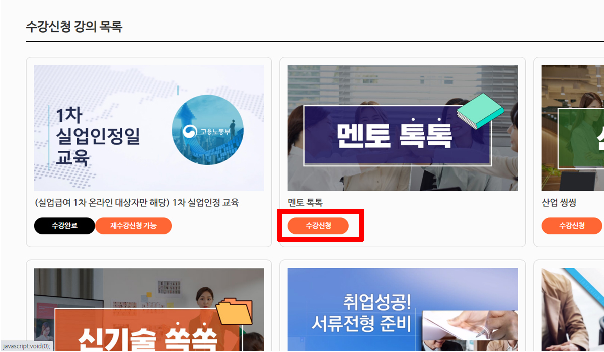 여러가지 교육과정이 나오는데 이중에서 하나를 선택하면 되는데, 멘토 톡톡을 수강신청해본다.