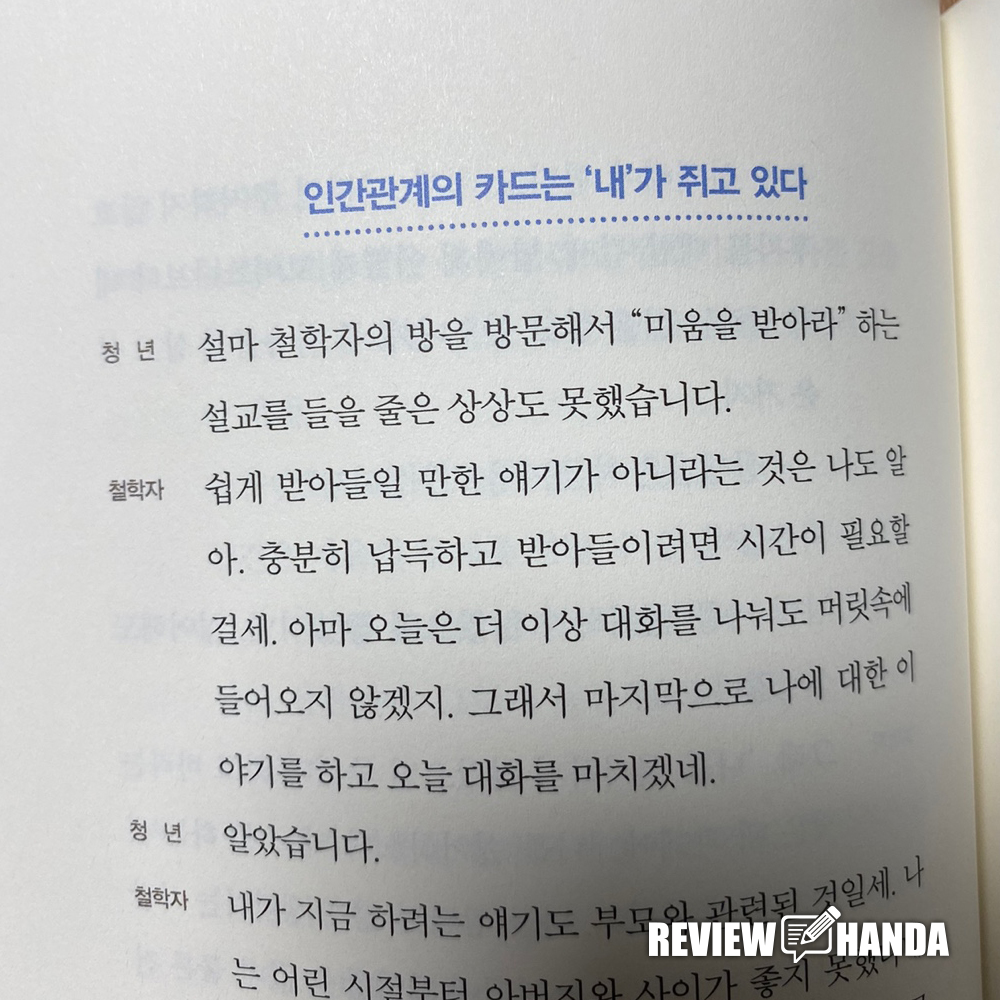 이책에서 자기수용, 타자신뢰, 타자공헌을 순환구조로 연결하고, 인간관계를 수직관계가 아닌 수평관계로 가질수 있을때 친구가 될수 있다고 한다. 이제 나이를 떠나서 인간관계에서 나는 누구보다 위가 되고 싶어하지도 않는 동등한 수평의 관계를 가질수 있도록 노력하면서 친구를 만들어나갈것이다.