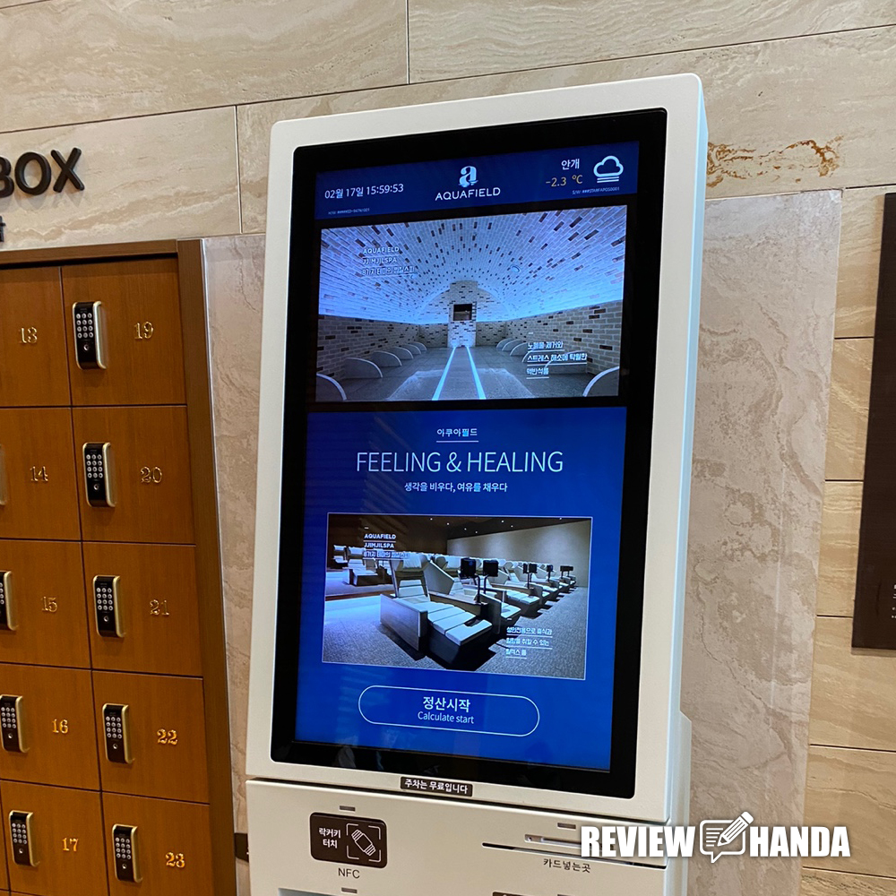 여기는 6시간이 넘으면 정산할때 추가요금이 나온다고 해서 우리는 씻는 시간을 계산해서 수영장 놀이를 마무리하고 씻고 나오기로 한다. 사우나에서 뜨거운 물에 몸을 담그니 몸이 노곤노곤... 사우나를 마치고 나오니 키오스크에서 정산을 해야 신발장키를 열수 있다고 한다.