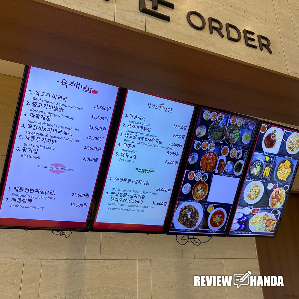 진동벨이 울려서 음식을 가지러 가니깐 푸드코트는 찜질스파와 붙어있었다. 반대편에는 찜질복을 입고 있는 사람들이 음식을 받고, 이쪽은 수영복을 입고 ㅎㅎ