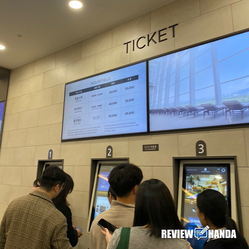 아쿠아필드는 하남 스타필드 3층에 있어서 우리는 엘리베이터를 타고 올라갔다. 3층에 내려서 주위를 보니 아디다스 매장 옆에 아쿠아필드가 보인다. 여기는 워터파크와 찜질스파가 같은 입구에서 진행된다.