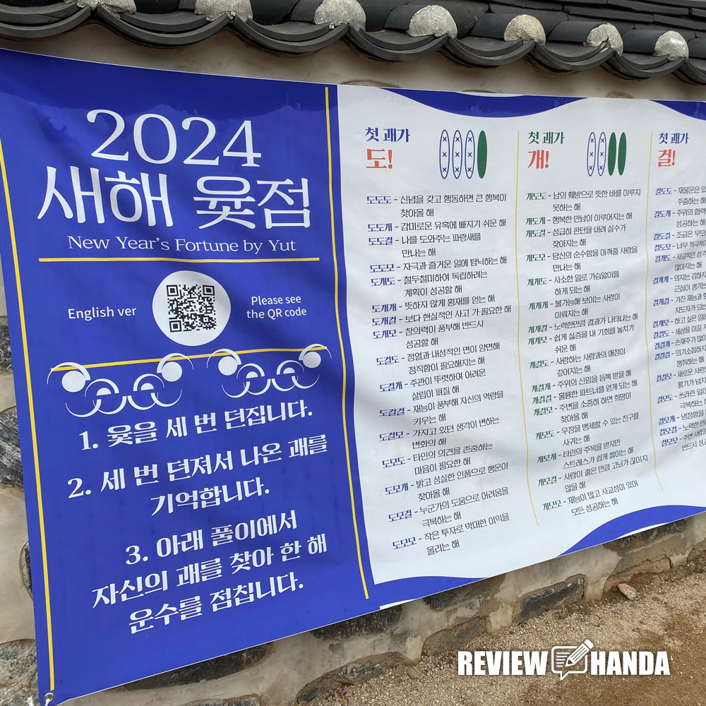 그 다음으로는 윷점을 볼수 있는곳이 있어서 윷을 던져봤습니다. 세번을 던져서 나오는걸로 보는건데요.