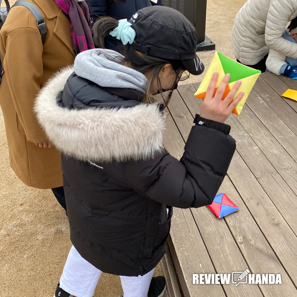 그 옆에는 딱지치기, 제기차기 등 체험을 할수 있도록 되어있어서 많은 아이들이 즐기고 있었습니다.
