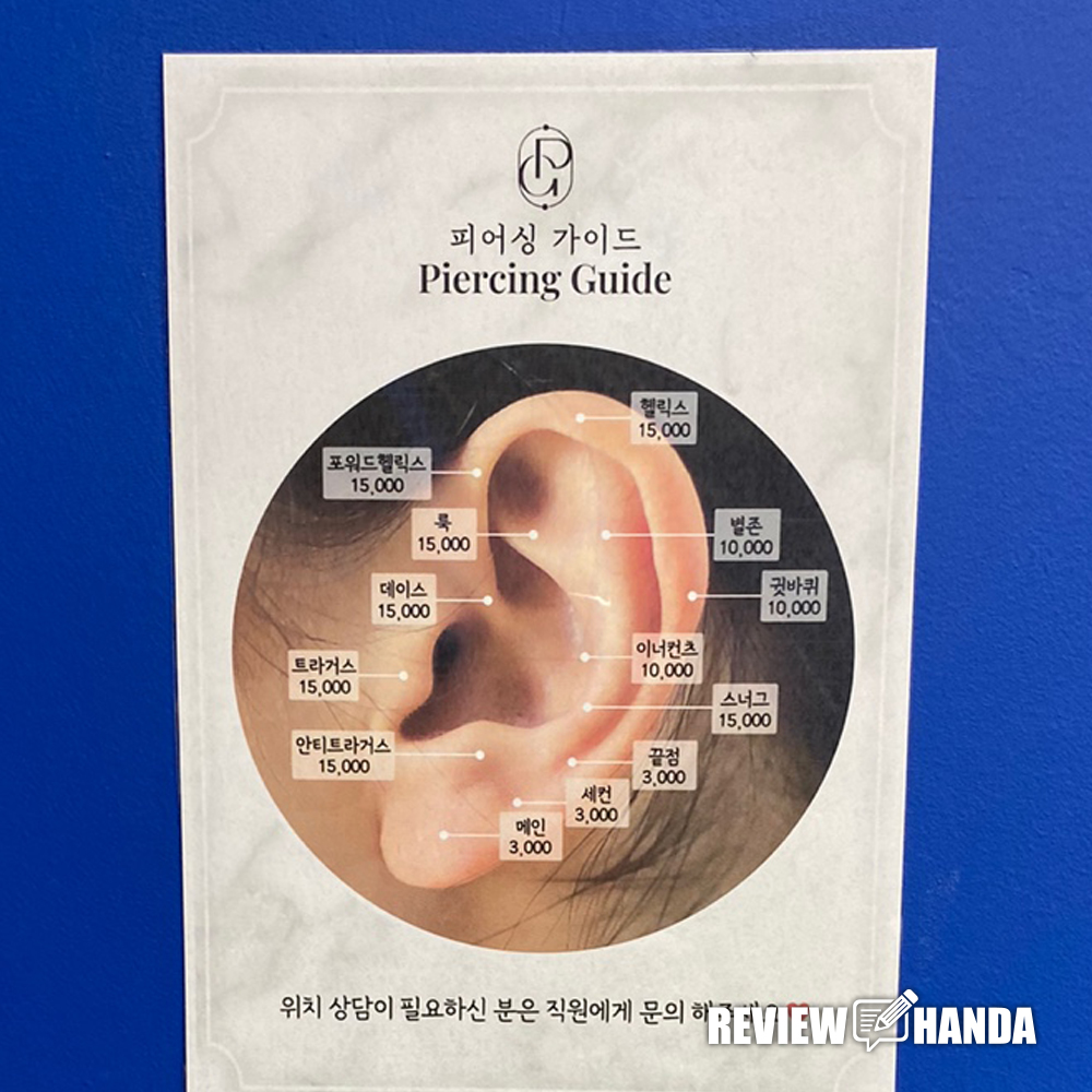 귀뚫는 비용은 부위별로 다른거 같다. 일반적으로 귓볼에 귀를 뚫는것외에 피어싱을 위해서 하는것은 금액이 조금 비싼거 같다.