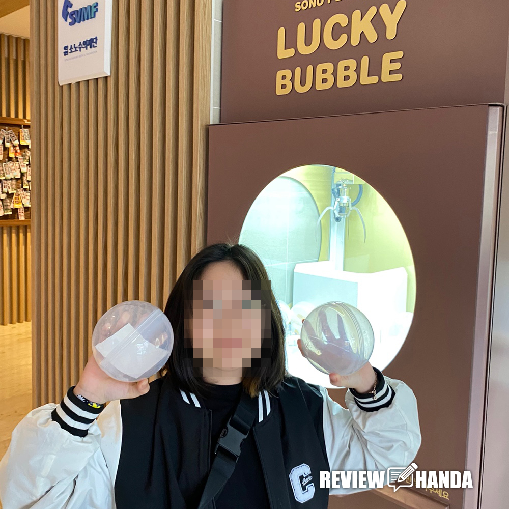 럭키버블이라고 되어있는 곳은 플라스틱 원형볼을 뽑는거라서 쉽지 않을거 같은데, 2개를 성공했다~!! 역시~