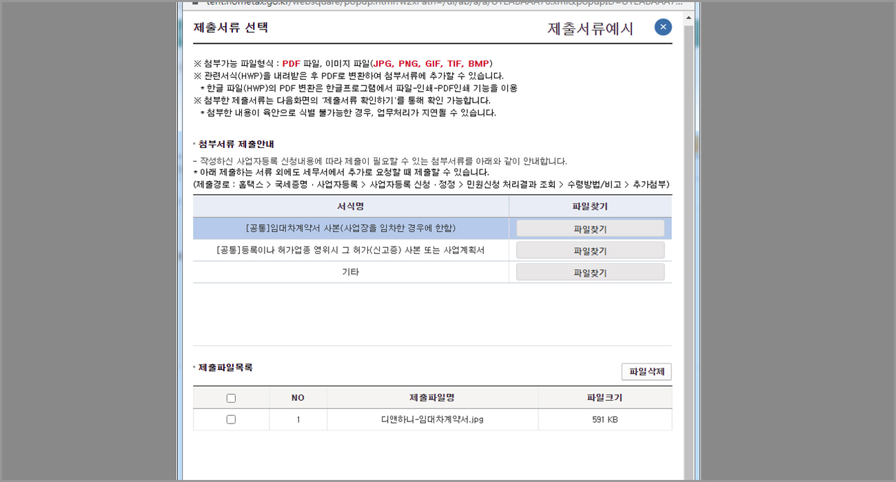 첨부서류는 업종마다 다들텐데요. 저처럼 온라인쇼핑몰을 위해 임대차계약서가 있는 경우는 임대차계약서 사본을 첨부하시면 됩니다.