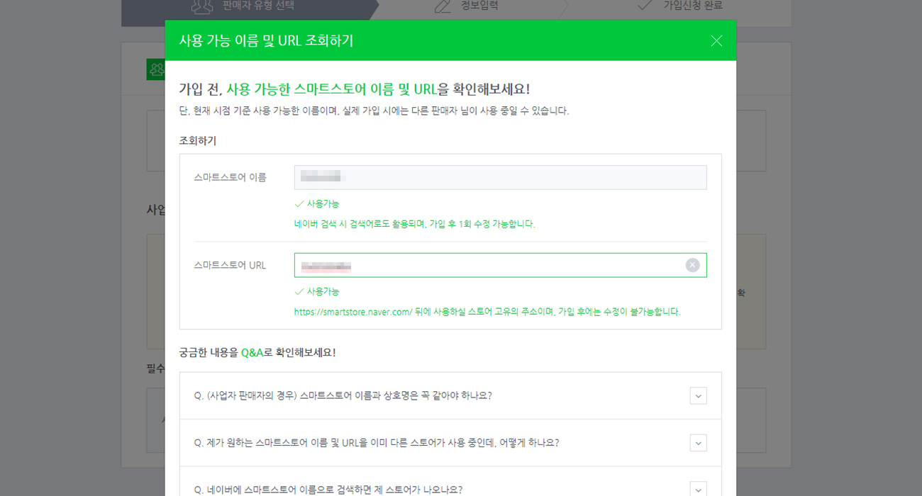 가입전 사용가능한 스마트스토어 이름 및 URL을 확인해보세요~