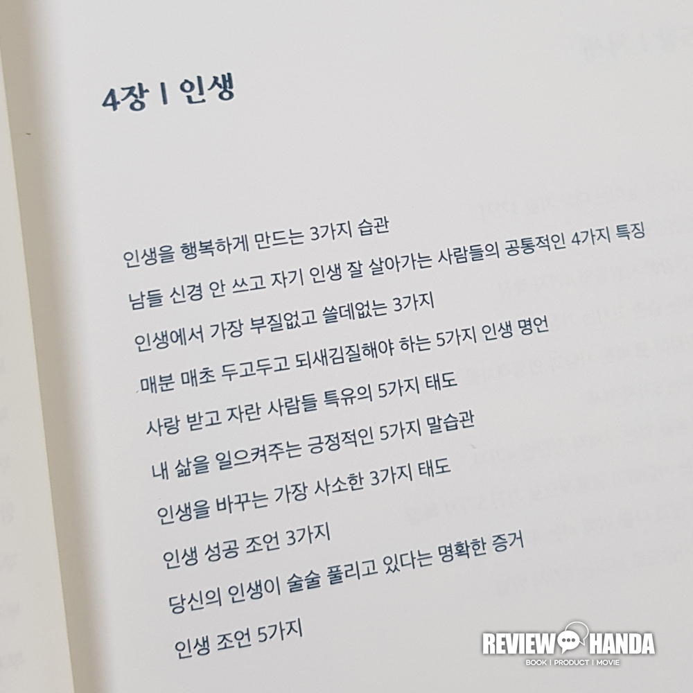 각 파트별로 정말 요약 정리되어 있듯이 내용이 되어 있는데요. 군더더기 없다는 표현이 맞을 거 같은 인생 공략집입니다.